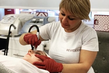 Ovo je nježna, bezbolna metoda, bez rizika od alergije i ožiljaka, metoda kojom možemo individualno regulirati do kojeg stupnja i koliko agresivno želimo pristupiti tretmanu. Pomoću toka kristala aluminijevog oksida, Reviderm Skin Peeler nježno i bezbolno te na kontroliran način odstranjuje gornji sloj kože. Nakon ovog ciljanog uklanjanja mrtvih stanica, stimulira se snažan rast novih zdravih stanica kojima je potrebno osigurati nakon samog tretmana i određene aktivne sastojke kako bismo održavali rezultate od tretmana. Odabir odgovarajućih aktivnih sastojaka, u Reviderm sistemu, prepustit ćete svom specijalistu koji će vas ciljanim odabirom kućne njege postepeno i sigurno voditi do zdrave i njegovane kože te će vam ona napokon moći osigurati svoju osnovnu funkciju, a to je- štititi vas!